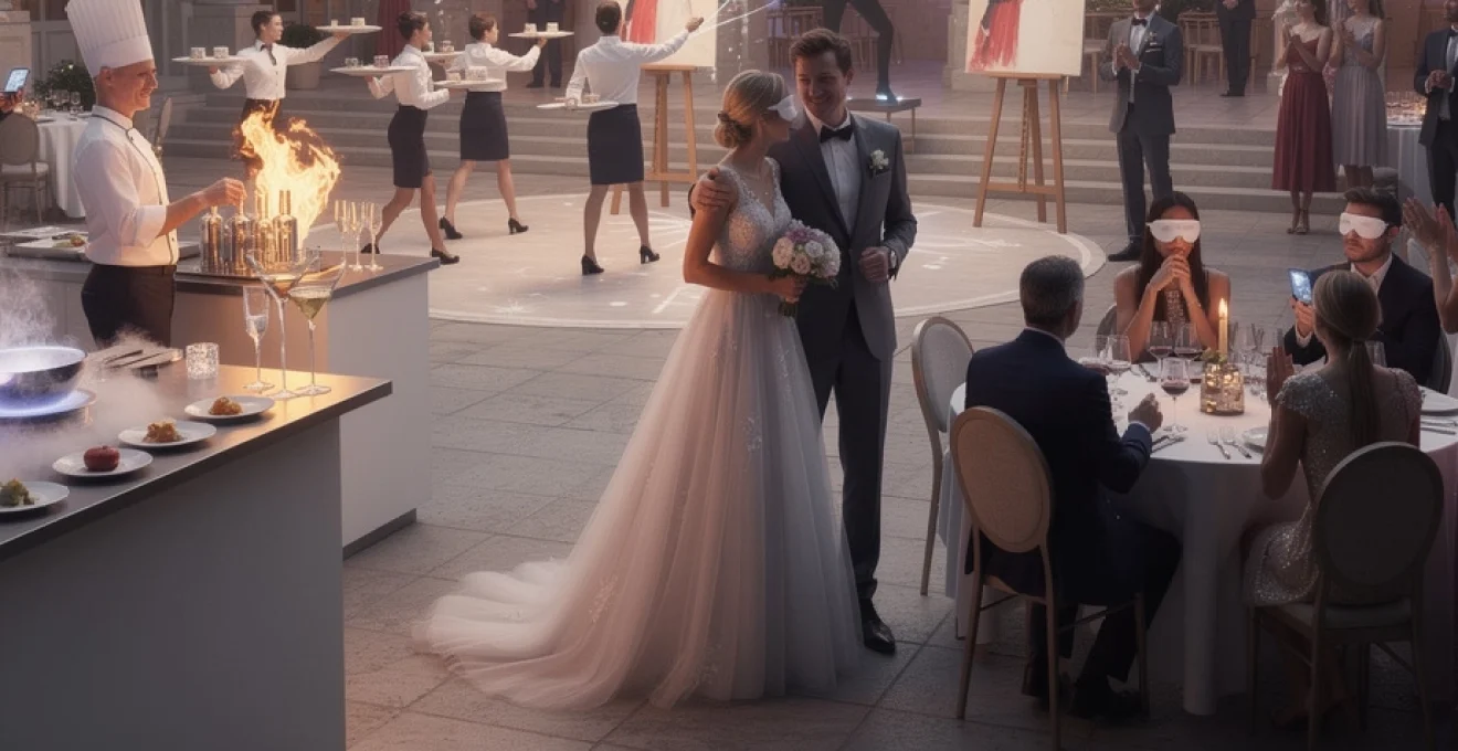 Vous pouvez par exemple structurer la soirée autour de trois actes – la rencontre, le voyage, la projection vers l’avenir – et associer à chacun une animation spécifique : mapping vidéo pour raconter vos débuts, dégustation en aveugle inspirée de vos escapades, show de drones pour symboliser vos projets. Impliquer vos invités dans ce récit, via des messages audio enregistrés, des photos à débloquer en réalité augmentée ou des vœux projetés en temps réel, renforce leur sentiment de faire partie intégrante de l’aventure. Au final, l’élégance naît de cette cohérence : chaque surprise, aussi innovante soit-elle, a une raison d’être et raconte quelque chose de vous.